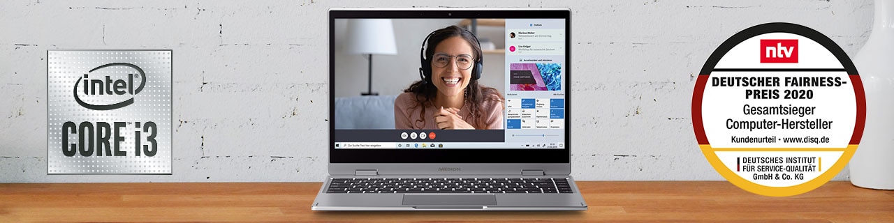 Beim Frühstück schaust Du die aktuellsten Nachrichten, im Bus surfst Du wie auf einem Tablet durch das Internet, im Café schreibst Du bequem E-Mails – und das alles mit einem Gerät. Das MEDION S14405 macht Dich einfach flexibler und ist dabei mit seinem hochwertigen Aluminium-Gehäuse so elegant wie vielseitig. Durch ein einfaches Umklappen verwandelst Du das MEDION S14405 vom vollwertigen Notebook in ein flaches Tablet – oder Du stellst es im Zelt-Modus stabil und sicher auf. Zudem unterstützt das moderne Display sowohl Touch- als auch Stift-Steuerung. Für starke Leistung sorgt ein Intel® Core™ Prozessor der zehnten Generation sowie ausgiebiger DDR4 Arbeitsspeicher. Das brillante Display garantiert Dir eine herausragende Darstellungsqualität und packende Unterhaltung. Schreiben, zeichnen, Medien bearbeiten oder Multimedia-Unterhaltung genießen? Das MEDION S14405 setzt Deiner Kreativität keine Grenzen.
