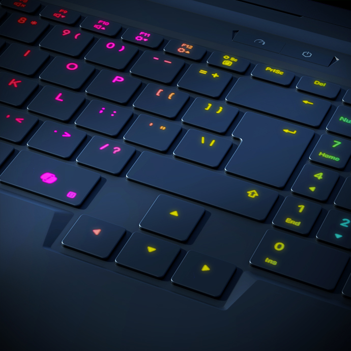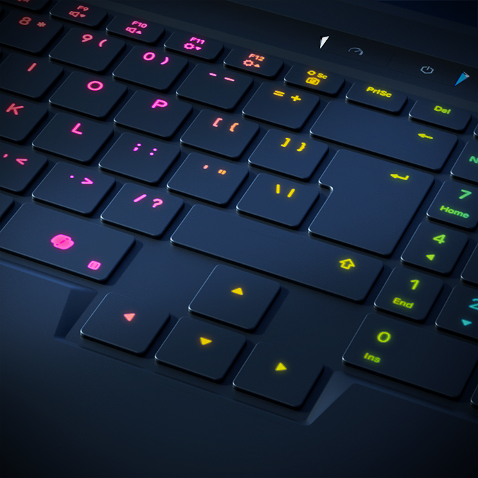 Verleihe deinem Gaming-Buddy deine ganz persönliche Note mit der Keyboard-Beleuchtung (RGB per key), sowie beleuchteten Lüftungsschlitzen.