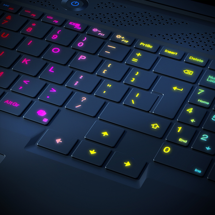 Mit der Lightbar an der Front und der RGB-Beleuchtung am Keyboard strahlt dein Laptop in deinen Lieblingsfarben. Dank RGB per key ganz gezielt.
