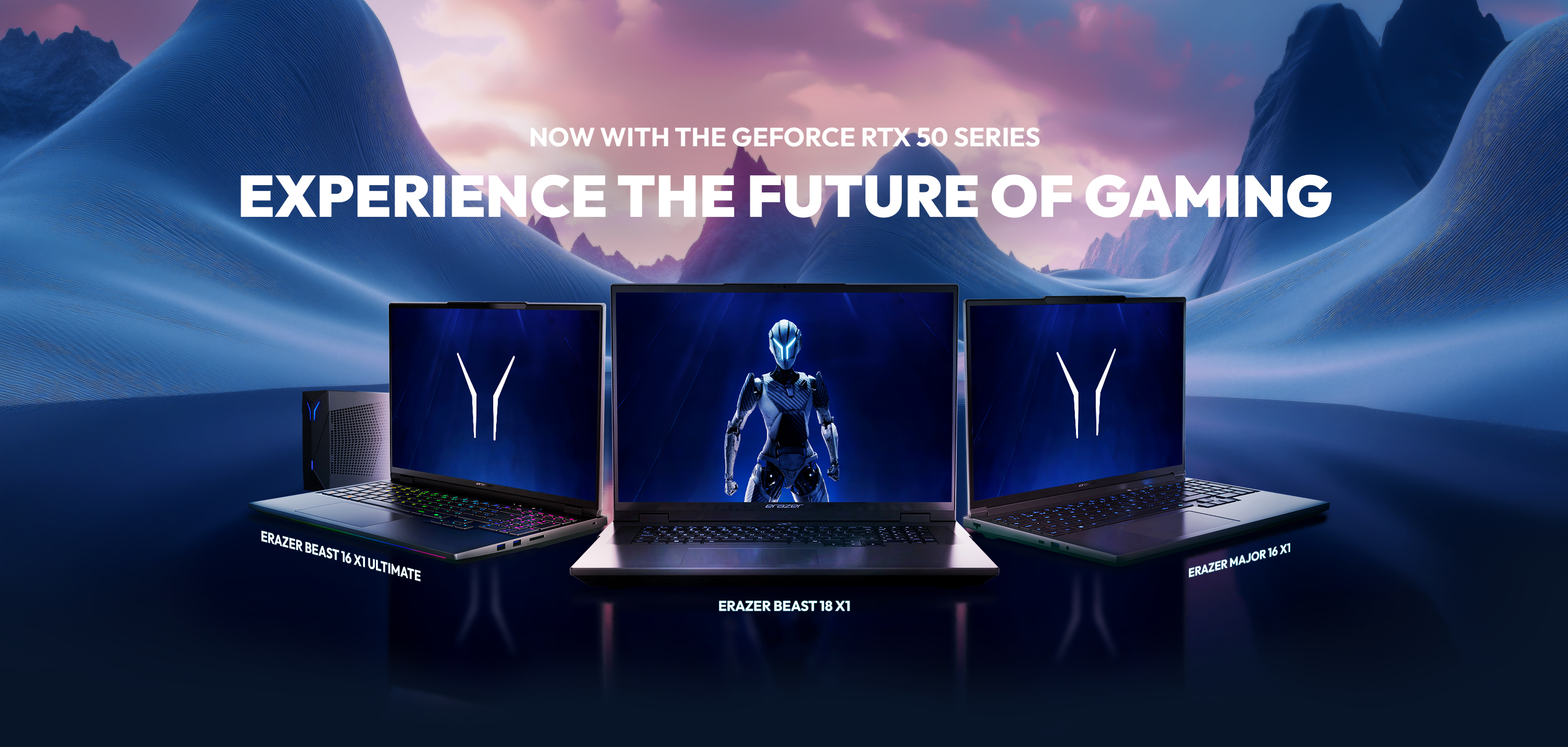 Dank den GPUs der NVIDIA GeForce RTX™ 50-Serie mit Blackwell-Architektur erhalten die High End Gaming Laptops von ERAZER bahnbrechende Funktionen.